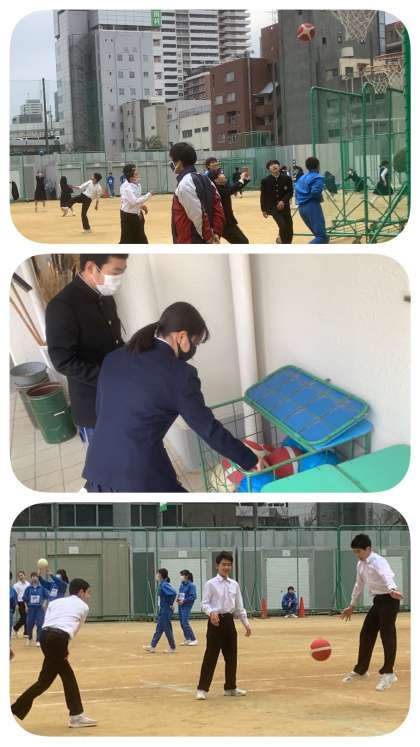 今年度、昼休みに活動できるのもあと5日となりました。今日は運動場で2年生、体育館では1年生がボール遊びに興じています。工事の影響で運動場は半分になりましたが、生徒たちは安全に配慮して活動しています。また、体育委員が、ボールの貸出係の役割を、責任を持って果たしています。