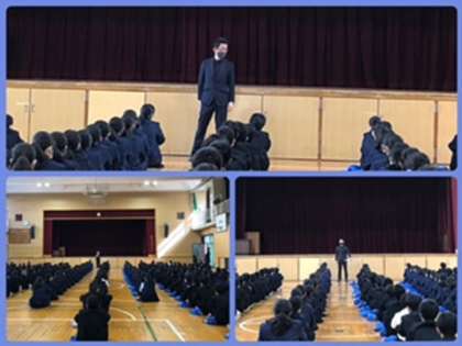 また、先生からは「ネット依存について」「春休みの勉強の方法」「命を大切に」「服装を正して」というテーマでお話がありました。