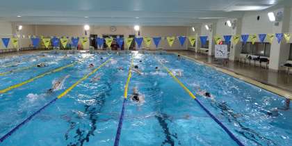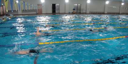 上宮高校のプールをお借りして、花乃井、堀江、玉津、東の4校で合同練習を行っています。今月2回目なのでしっかり泳ぎこんでいます。