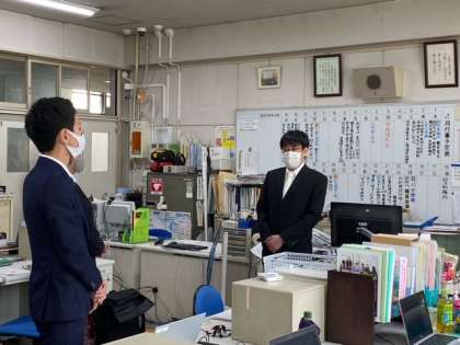副校長先生に、職員室で教職員にご挨拶をいただきました。