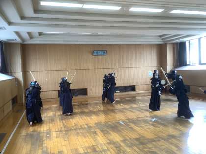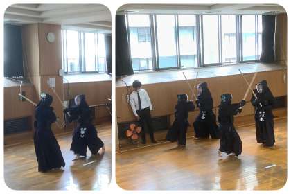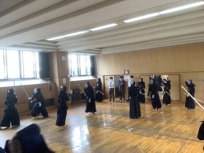 この4月に着任した新しい顧問の先生方をお迎えした剣道部。今日も3人の先生に見守られて活動をしています。先生方の指導を素直な気持ちで受け入れる東中生。一人ひとりがさらなる成長につなげます。