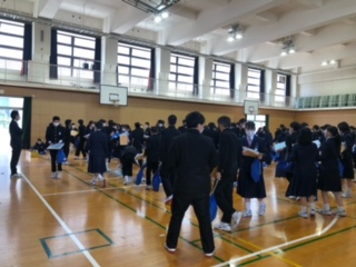 2年生の旧クラスから3年生の新クラスに並び替え、書類整理を行いました。ざわつくことなく、速やかに準備する姿を見て、学年主任の掛川先生から「皆さんを誇らしく思います」と挨拶がありました。卒業までの貴重な時間を、大事にしていきましょう。よろしくお願いします。
