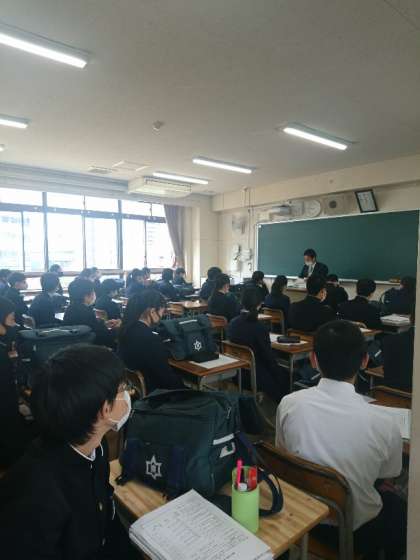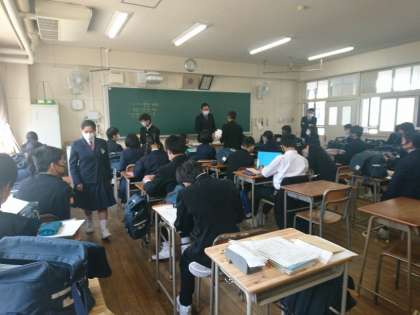その後、生徒会による「対面式」を、顔が見えないのは残念でしたが、放送で行いました。在校生を代表して生徒会役員が「歓迎のことば」を、1年生代表生徒が「よろこびのことば」をしっかりとスピーチしました。
