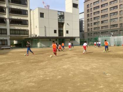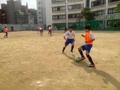 サッカー部が春の陽射しをいっぱい浴びて活動しています。限られたスペース、制限のある中ですが、創意工夫をして練習しています。5月5日までは、各大会を除き、校外での活動や練習試合は見合わせることになりました。次の大会に向けてモチベーションを維持しつつ、がんばれ東中サッカー部!!