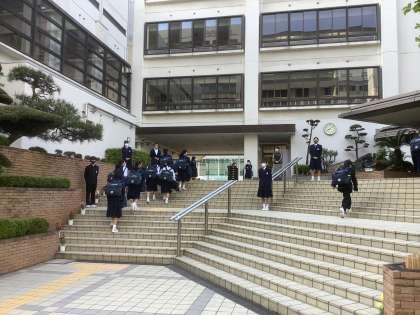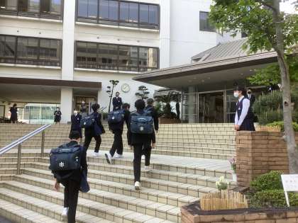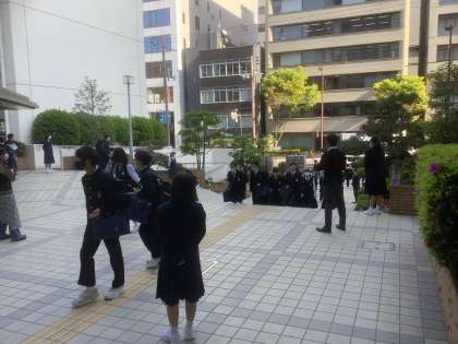 昨日に続いて、34期生の部活動部長会議のメンバーが挨拶運動に取り組んでいます。