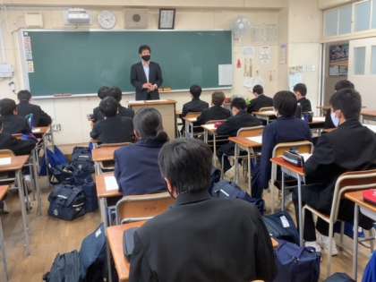 サッカー部には新しく13人の一年生が入部しました。上級生から一人ずつ自己紹介して、今後の活動についてお話がありました。