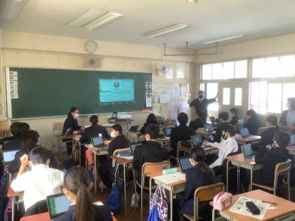 ネットリテラシーを含めて、諸注意をPC教室からオンラインで行っています。