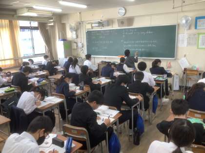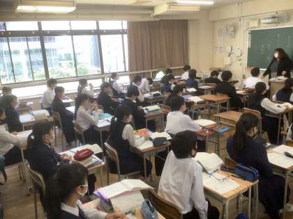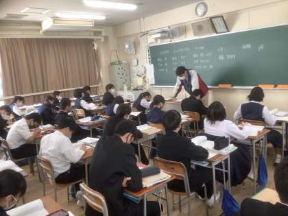 写真上から3年1組 理科、3年2組 国語、3年3組 英語です。
