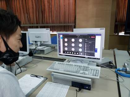学校と自宅をつないで、担任の先生と朝の学活が始まりました。