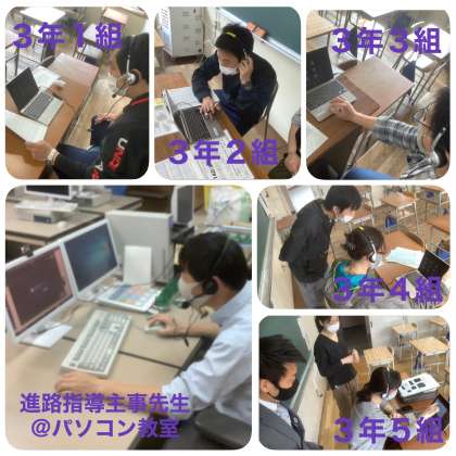 3年生はオンライン学活後にオンライン集会。Teamsを活用して、進路指導主事の先生の話を聞きました。