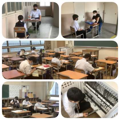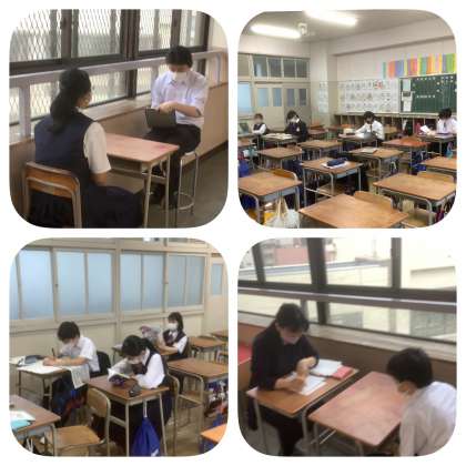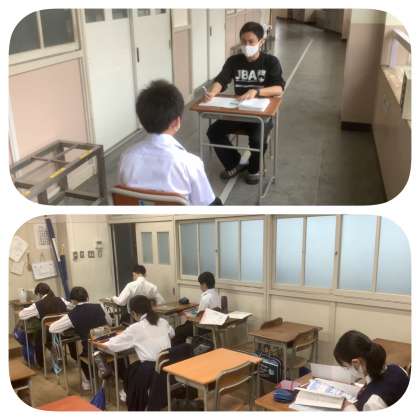 緊急事態宣言期間中は、2時間の授業を工夫して実施しています。今日からは、0時間目の時間を利用しての教育相談。担任の先生が一人ひとりと向き合い、生徒に寄り添い、心のケアに努めています。