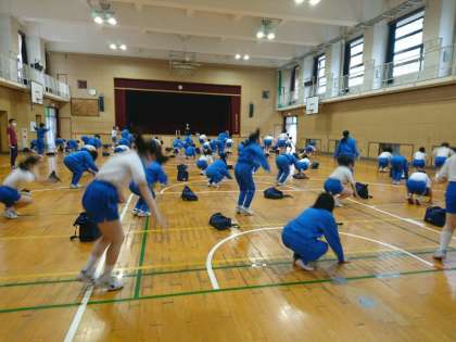 緊急事態宣言中は、どうしても運動不足になりがちです。体育の授業では、しっかりと身体を動かし、屋外の活動に移れるように準備をしています。