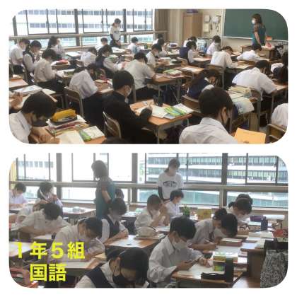 国語の授業は、学力向上サポーターの先生とのティームティーチング。中間テストに向けて学習内容の振返りなどに集中して取り組んでいます。