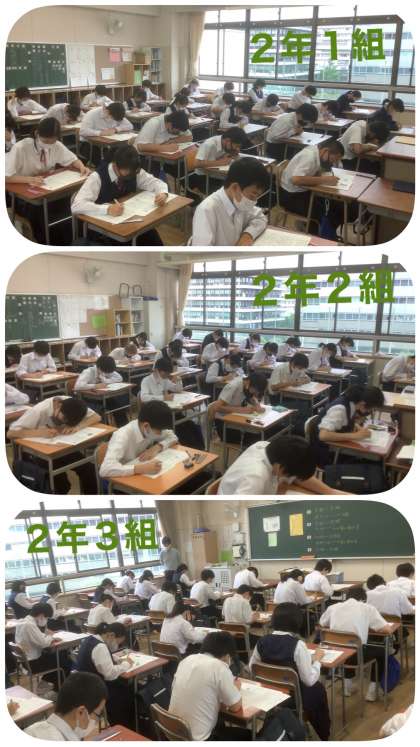 明日は1・2年生が数学と英語、3年生は数学と理科です。もう1日、頑張りましょう!!