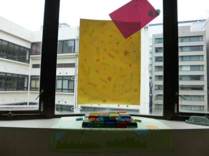 ブロックは一日最大3個までおくことができるのですが、パーフェクトを達成したクラスには、ブロックに加えてお子様ランチのような旗が立てられます。
