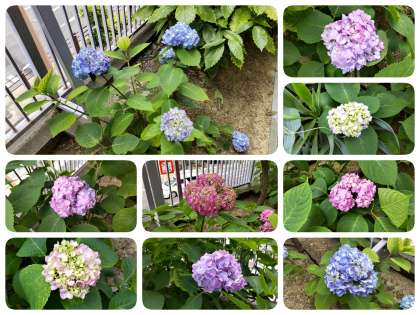 新しくなった技術室からふと窓の外を覗くと様々な色合いの紫陽花(あじさい)が美しく咲いています。