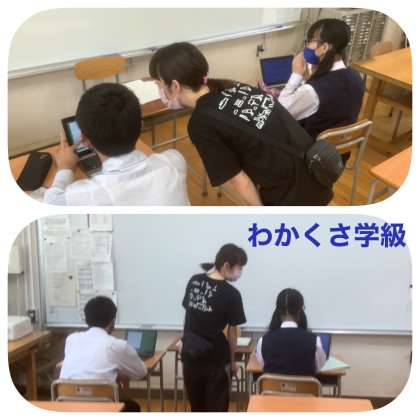 わかくさ学級では、一人1台端末を使い、学習に取り組んでいます。緊急事態宣言の期間に随分と操作に慣れてきました。ノートに書くこと、教科書や資料集を読むこと、端末を使う事などを組み合わせて、一人ひとりに応じた学習を進めています。