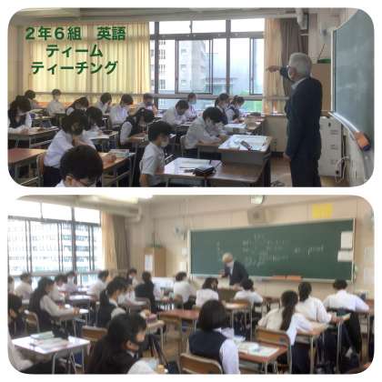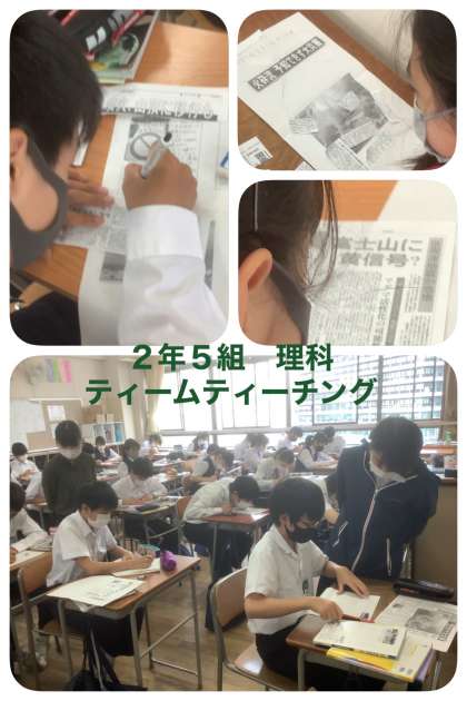技術の授業では一人1台端末を使っての学習が進められています。理科の授業では、自然災害に関する新聞記事を使って、一人ひとりマイ新聞に編集しています。英語のティームティーチングでは、ゆったりとした空気の中、学力の向上、基礎基本の定着が図られています。
