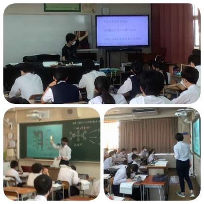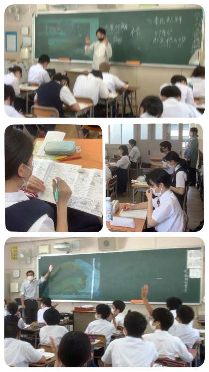 ICT教育アシスタントの先生が、月2回ほど来校してくださいます。そのICT教育アシスタントの先生と教室を巡回すると、学年を問わず多くの教室で、パソコンと書画カメラの画像をプロジェクターから黒板に投影し授業が進められており、その数の多さと質の高さに感心されていました。東中教職員は、生徒の学力・体力の向上と学びの定着に向けて、授業改善に取り組むとともに、ICT教育アシスタントの先生から、より一層のICT機器の効果的な活用を学んでいます。