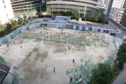 後半はサッカー部とソフトテニス部。サッカー部は7月3日(土)に大会が決まりました。ソフトテニス部は、男女合わせて、全学年で90人の大所帯。グループに分かれ、各グループが1時間の練習を工夫して活動しています。