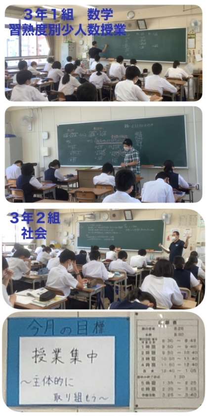 どのクラスも、今月の学年目標「授業集中〜主体的に取り組もう〜」を実践しています。