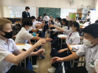 2年生は限られた時間の中で、教室で久々の実験を行いました。刺激と反応の学習をしています。今日から実習生も授業に参加し、和気あいあいとした雰囲気でした。