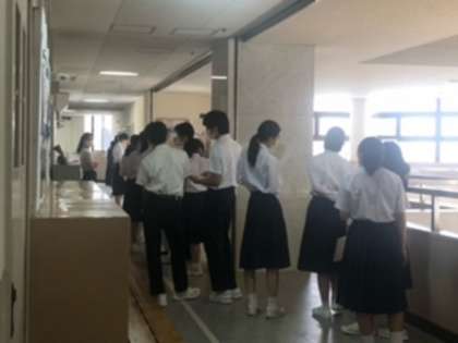 今日は、学校で全学年の歯科検診を行っています。2階の渡り廊下に検診用ブースを設置し、一人ひとり診ていただいています。