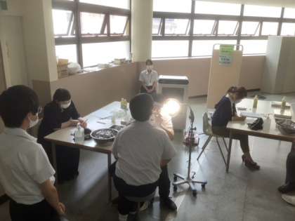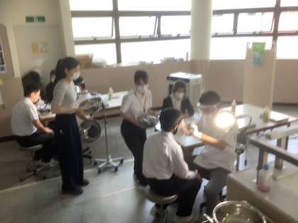 大阪教育大学教職大学院から保健室を中心とした実習中の大学院生は国家資格である「歯科衛生士」の資格を所持されており、検診用器具の入替や、検診のサポートをしています。