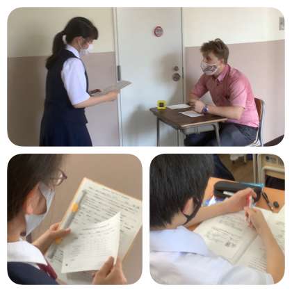 5組英語は、CーNETの先生と1対1でのスピーキングテストの様子です。