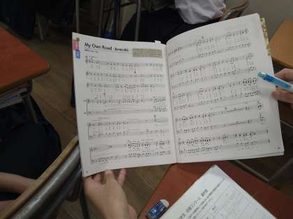 今日は文化発表会のときに歌う曲を各クラスで決めています。