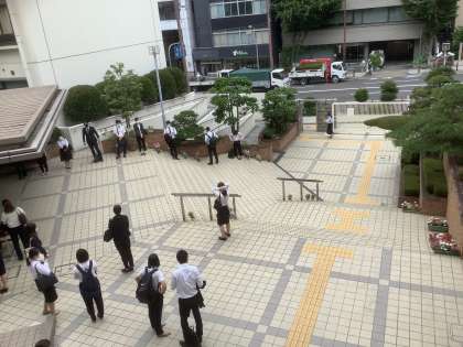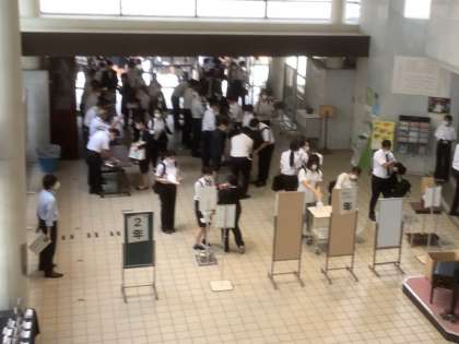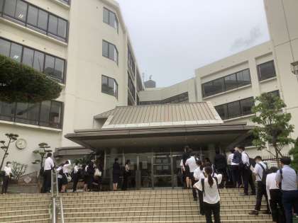 部活動に登校する生徒とともに、大阪市の教員をめざす方々がお越しになっています。日頃の努力が実り、存分に実力が発揮されることを願います。