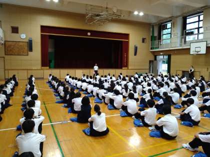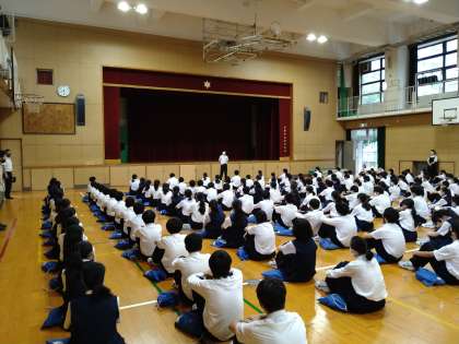 最初に、美化係代表から手洗い場の使い方についてお話がありました。