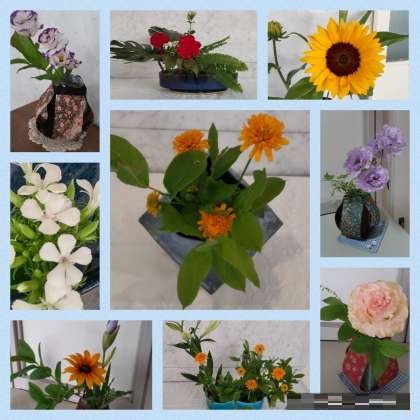 東中の玄関ホールと職員室・事務室前廊下に、美しい花々を生けていただいています。