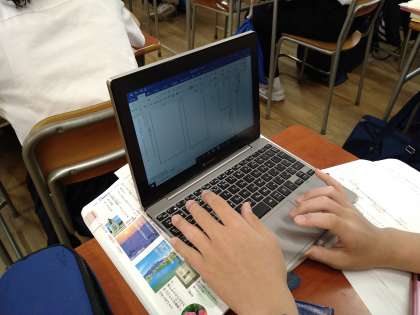 本日はインターネット上で配信された課題をダウンロードし、その中にどんどん書き込んで提出するという活動を行いました。