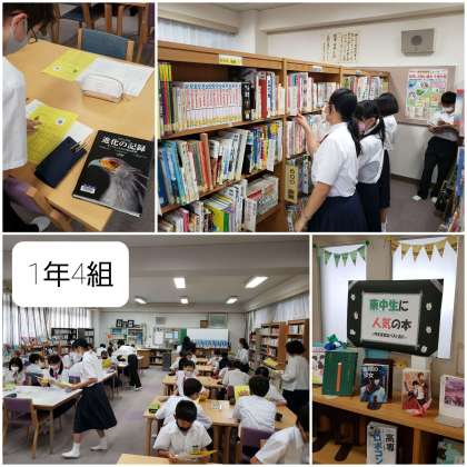 本日は、1年4組の生徒の皆さんに図書室の使い方や借り方の説明がありました。まずは1冊借りました。1年生への説明もこれですべて終了です。みなさん、どんどん本を借りてください。