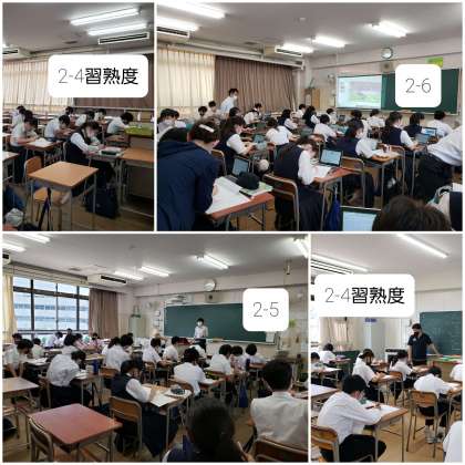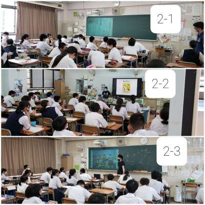 暑い中、一人一台学習者端末を使った授業も行われていました。家庭科ではお箸の正しい持ち方についての学習でした。