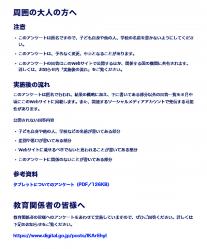 保護者・教育関係者の皆様へのアンケートをあわせて実施していますので、ぜひご回答ください。詳しくは下記のお知らせをご覧ください。