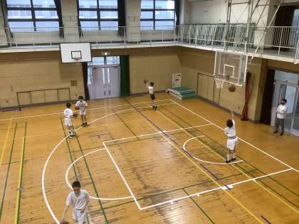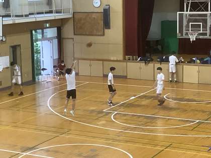 体育館では、男子バスケットボール部が、大会に向けて、黙々とシュート練習に勤しんでいます。