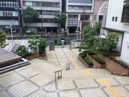 雨の降る蒸し暑い朝を迎えました。8時前には、管理作業員が正門前歩道の清掃を終え、生徒を迎える準備を整えました。