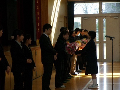 表彰状の伝達の後、代表生徒への修了証の授与から修了式は始まりました。