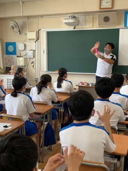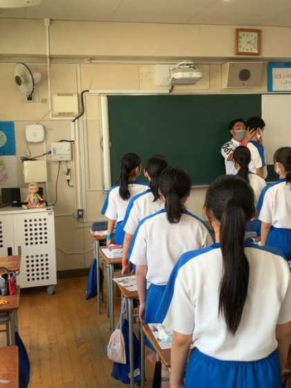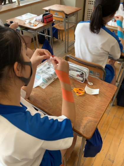 3年5組の教室では、キネシオビューティーの講座が開かれました。
