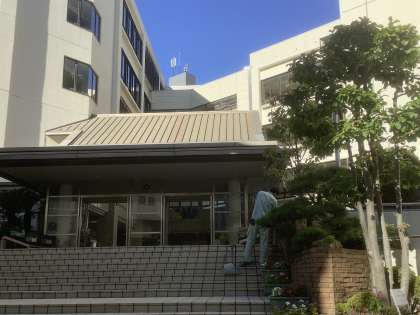 真っ青な空に蝉の声が鳴り響く、月曜日の朝を迎えました。管理作業員が正門付近を清掃して生徒たちを迎える準備をしています。最高気温が36度と猛暑日を記録するとの天気予報。感染症対策とともに、こまめに水分補給を取りながら熱中症対策に努めます。