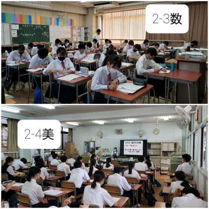 梅雨明け宣言も出され、いよいよ夏本番という感じとなりました。本日、2年生は1学期最後の授業となります。各教科から夏季休業中の課題が配られましたのでご確認ください。