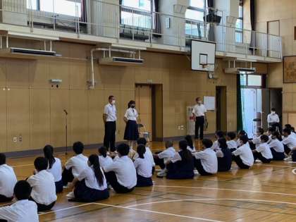放課後に全学年の体育大会実行委員が集まり、委員会が発足しました。委員長、副委員長が素晴らしい意気込みを述べてくれました。東中史上、新しい唯一無二の大会となるように頑張っていきましょう!