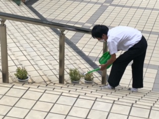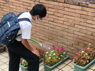 暑い中、朝一番に2年生が水をまき、補てん授業終には3年生も水をまき、連携して活動ができていました。