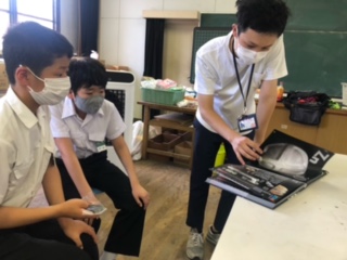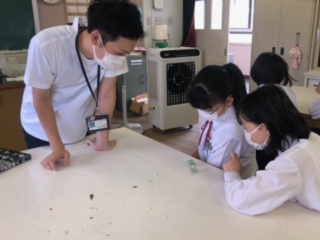 中高連携の繋がりで、大阪市立中央高等学校の先生にお越しいただき、夏の自由研究講座を開催しました。ホタル石などの岩石から化学元素を学びます。