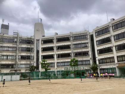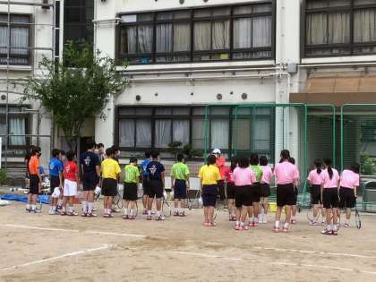 さて、ソフトテニス部が、2面のコートでの練習を学年別に時間差で行っています。涼しい時間帯は1年生の練習。先輩がいない中で、一人ひとりが自覚と責任を持ち、自分たちの練習ができる喜びと楽しさを味わってほしいと思います。