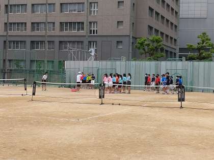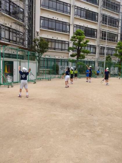 今日の活動の様子です。基本的なストロークやサーブ、ボレー等の練習をしました。