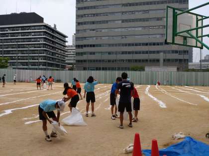 練習後にはグラウンドのにがりまきを行いました。感謝の気持ちをもって、協力しながら行いました!