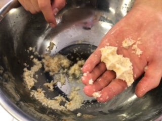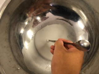 片栗粉で「とろみ」がつく原因を調べています。小麦粉やパン粉など他の物質と比較して、事前に調べていたダイラタンシー現象について確かめました。